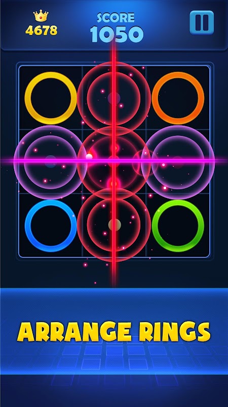 Match the rings of same color on a vertical, horizontal and diagonal line to score. Get bonus when you match multiple lines at a time. It is super fun and addictive!