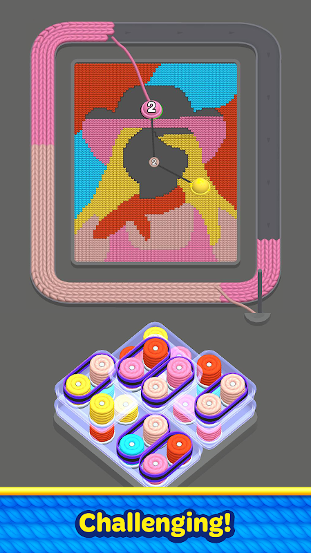 Em cada nível, sua missão é selecionar os carretéis de linha corretos em diferentes bandejas e combiná-los com os pontos coloridos na tela. Conforme os fios se movem pela esteira, eles se empilham, se entrelaçam e gradualmente se transformam em uma imagem vibrante. Desfrute da experiência relaxante enquanto os fios coloridos fluem suavemente e dão vida à obra de arte.