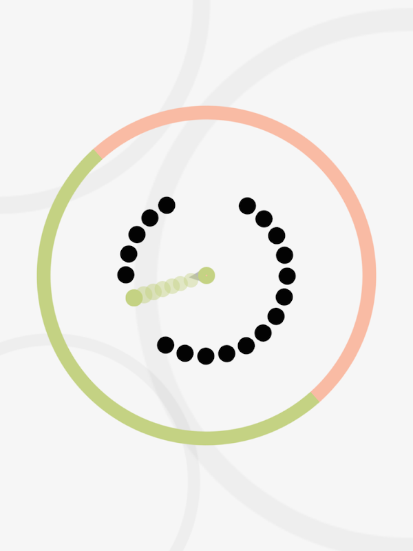 Colorim is all about a rim sliced into colors. There is an arrow in the middle with a dot on it's tail. Simply tap the screen to throw that dot to where the arrow points. Do your best to shoot the matching color in the rim but beware of the black dots in between because you should avoid hitting them.