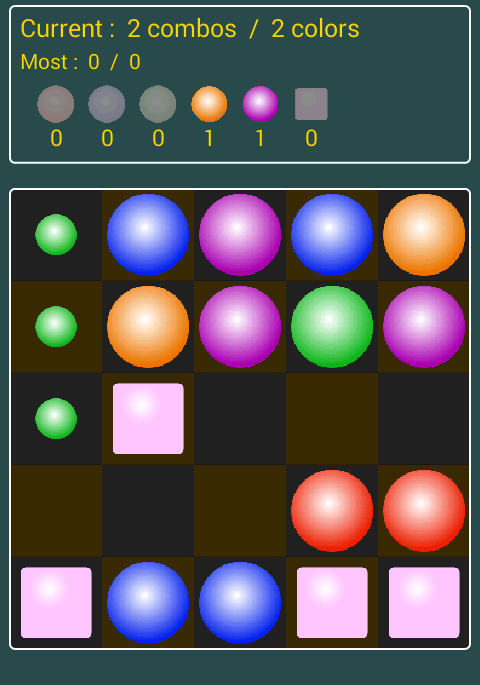 Vamos praticar para fazer uma combinação de cores lado a lado deslizando a bola.