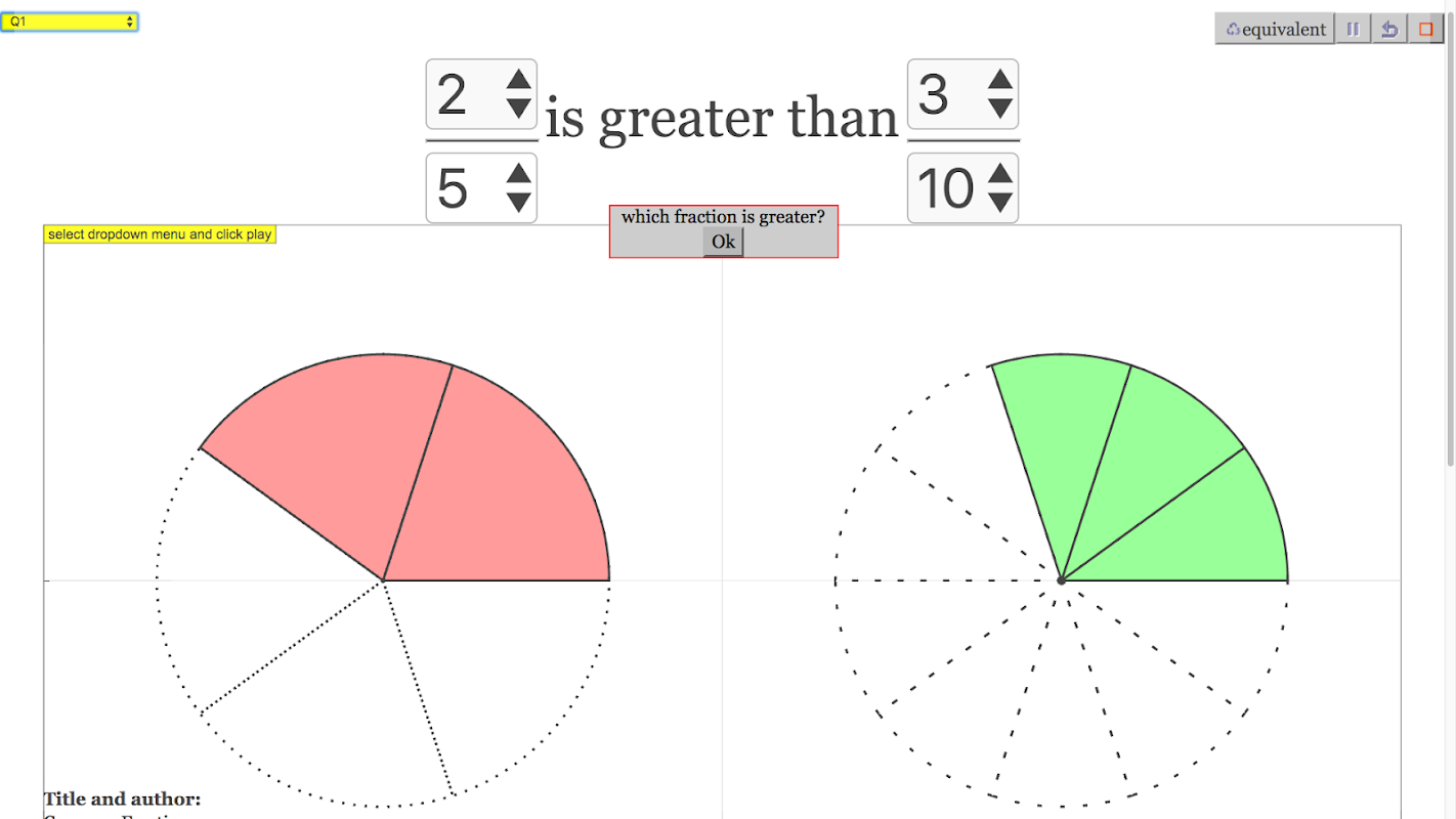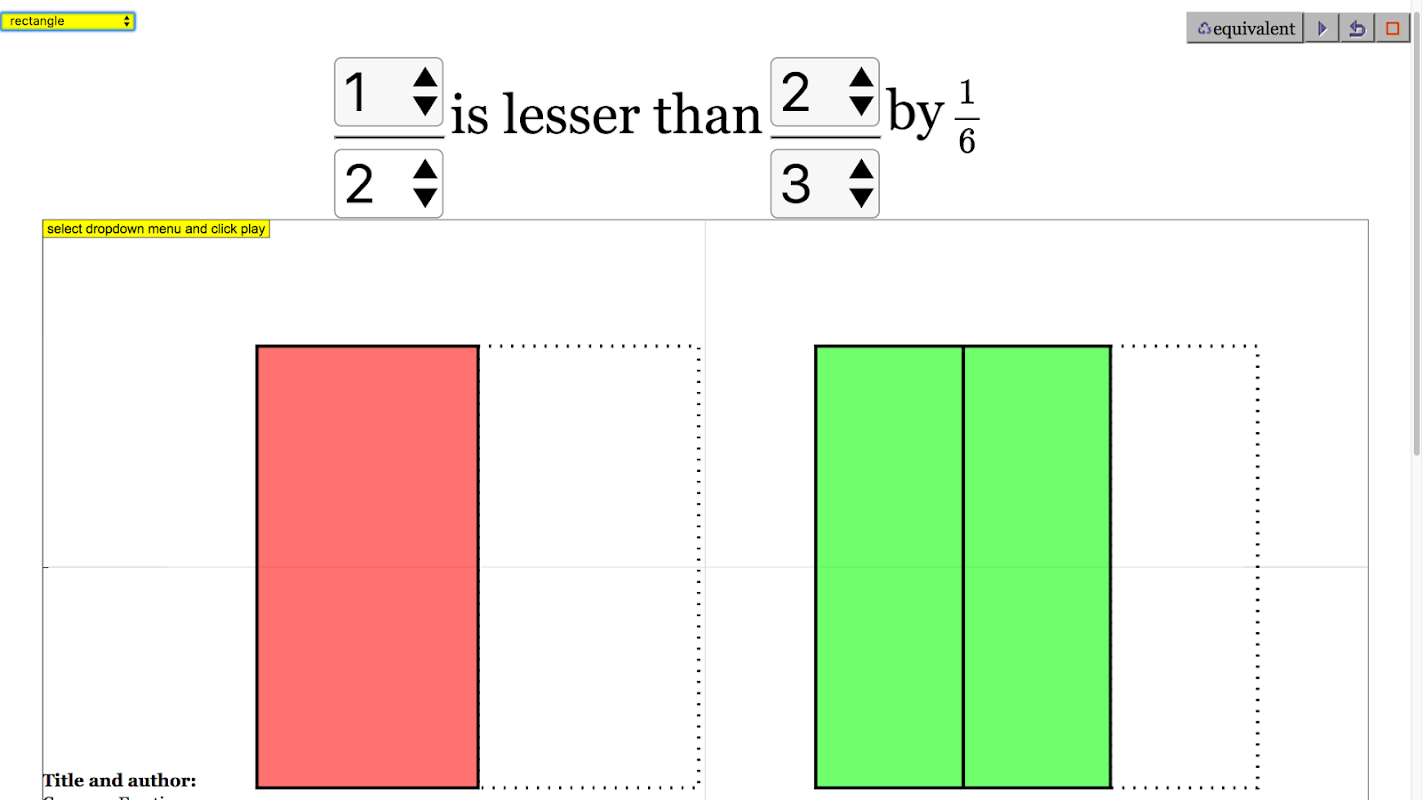 This simulation is designed to help visualize the comparing various fractions from 1/20 to 1 for primary mathematics.