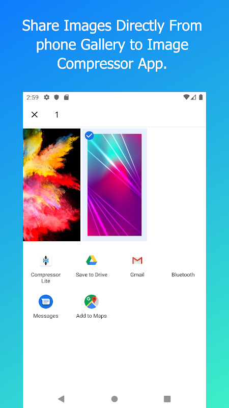 * Select Image Share option in phone Gallery or anywhere in phone & share image directly to Compressor App