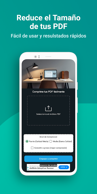 • Compressão rápida e eficiente: se você precisa reduzir o tamanho de um PDF para atingir um limite de megabytes ou simplesmente otimizá-lo para o seu dispositivo, nosso aplicativo garante resultados de qualidade.