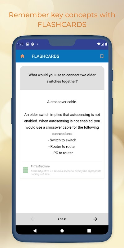As questões do teste prático e os flashcards examinam minuciosamente os tópicos do exame: