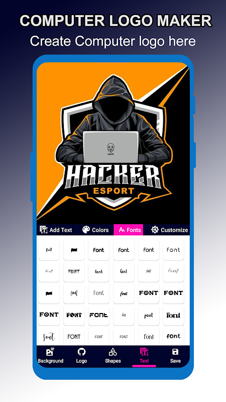 O aplicativo Computer Logo Maker contém todos os recursos que você precisa para criar um logotipo inspirador. Desde a edição de texto até o ajuste de fundo, personalização de formas, estilo 3D e muito mais.