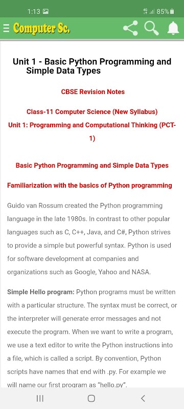 Computer Science Class 11 RBSE CBSE Computer Science Class 11 Notes & NCERT Solutions Mobile App