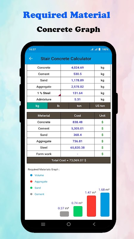 Uma ferramenta simples para calcular quanto concreto é necessário para laje, coluna, escada.