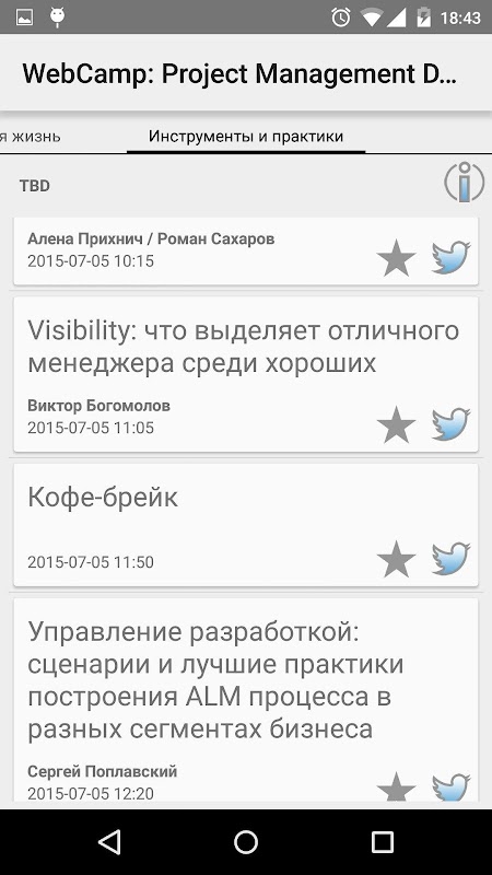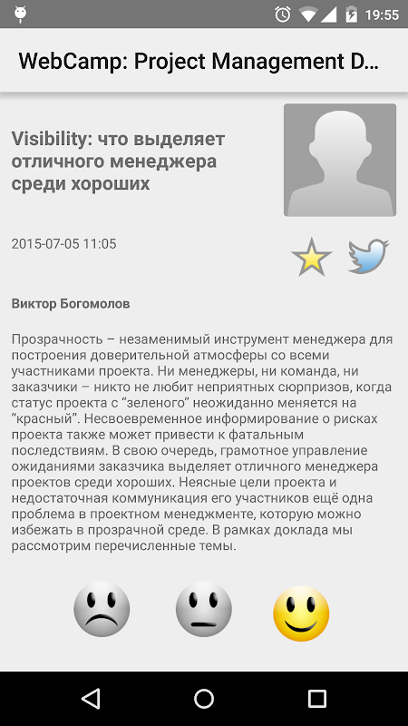 Confair is an application that provides easy information browsing about IT events in Ukraine with displaying the venue location on Google maps, checking favorite conferences and making your own sessions schedule. Also you can evaluate talks and share your emotions with Twitter.