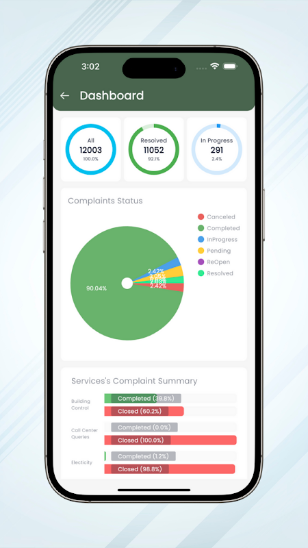 Depois que uma reclamação é enviada, ela segue um procedimento de processamento simplificado. Os residentes podem acompanhar o status de suas reclamações, vendo atualizações à medida que elas passam de pendentes para em andamento e, finalmente, para resolvidas. Essa transparência mantém os moradores informados sobre o andamento de suas solicitações.