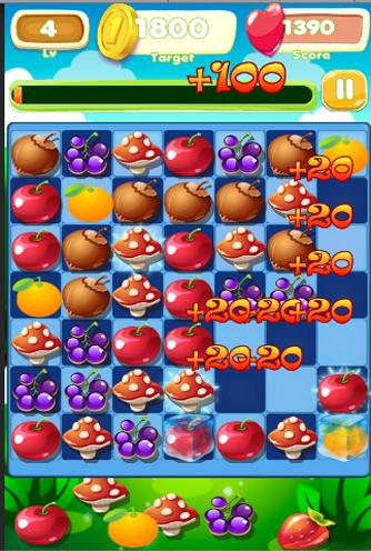 Obter ponto apagando Fruit. Você pode fazer mais cadeia de frutas para conseguir mais pontos!