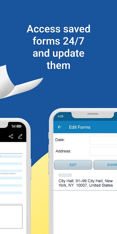 • Recupere formulários PDF de estimativas, planilhas de horas, registros de manutenção e relatórios diários e compartilhe-os via e-mail, Facebook, unidades de rede e outras opções de compartilhamento disponíveis no dispositivo
