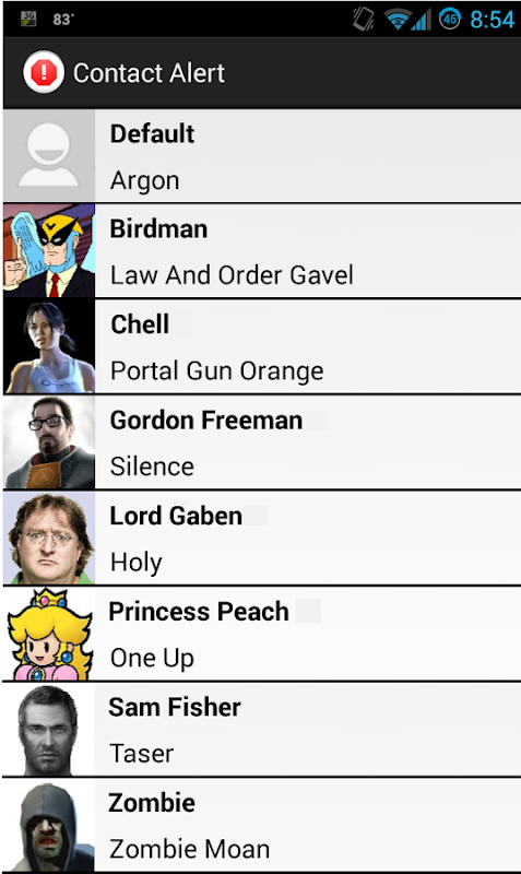 From there, Contact Alert will monitor incoming SMS or MMS messages and play the respective sound you selected for the contact that sent the message, or the default notification if none was set for that contact.