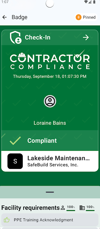 O aplicativo também fornece um selo de conformidade da instalação para acelerar o acesso no local se a organização de contratação conectada tiver esse módulo ativado.