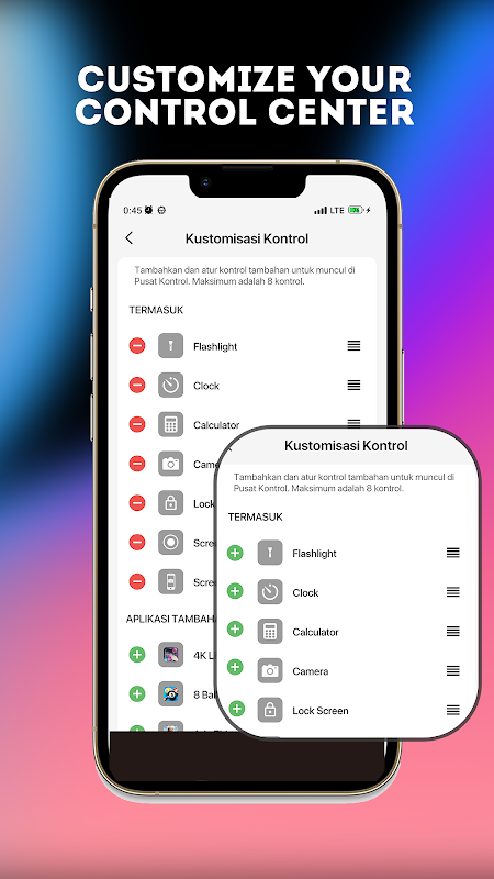 Personalize a experiência do seu dispositivo personalizando o controle do painel para mostrar o aplicativo usado com frequência. Com o painel central de controle, você pode definir seu aplicativo favorito como um atalho de acesso rápido. Seja seu aplicativo de mensagens, reprodutor de música ou ferramenta de produtividade, esse recurso permite agilizar sua rotina digital. Aproveite a conveniência com apenas um toque, economizando tempo e melhorando a acessibilidade do seu dispositivo.