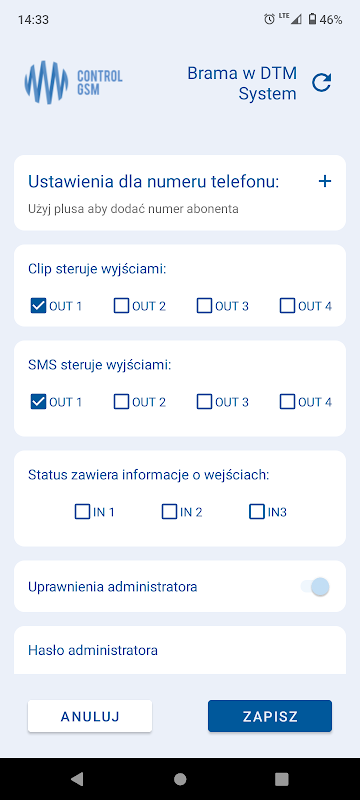 - naprawiono błąd braku aktualizacji hasła admina w przypadku edycji własnego numeru