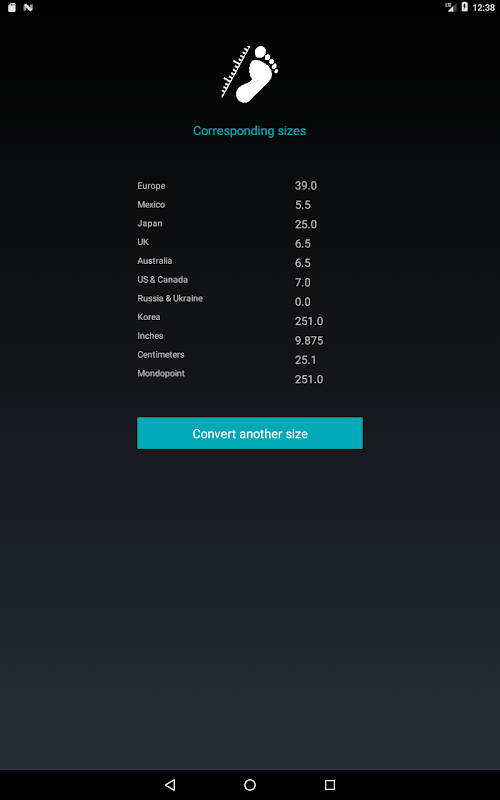 This is a handy tool to have in your smartphone. Just a few taps to solve the global shoe sizing mystery, anytime, anywhere.