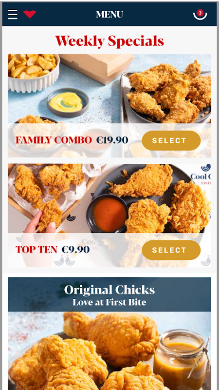 Cool Chicks é um frango grego fresco, cuidadosamente marinado, à milanesa numa mistura de 4 farinhas e 9 especiarias.