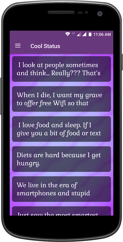 All Latest Cool Status application contain the latest status message for quick update status in Facebook, Twitter etc.