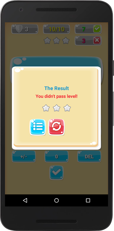 Para passar de nível, você precisa acertar pelo menos 8 respostas matemáticas e então poderá passar para o próximo nível.