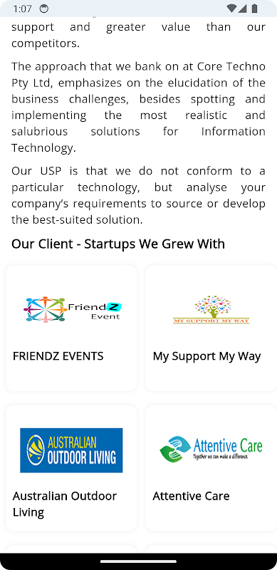 Este aplicativo é usado para exibir os serviços, funcionalidades fornecidas pelo core techno. Qualquer pessoa pode acessar o básico e solicitar informações sobre nossa organização