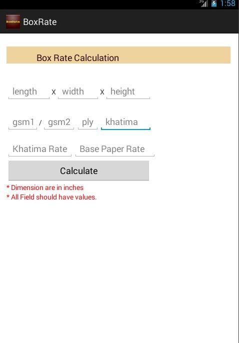 Este App fornecer o custo material de uma caixa de papelão ondulado.