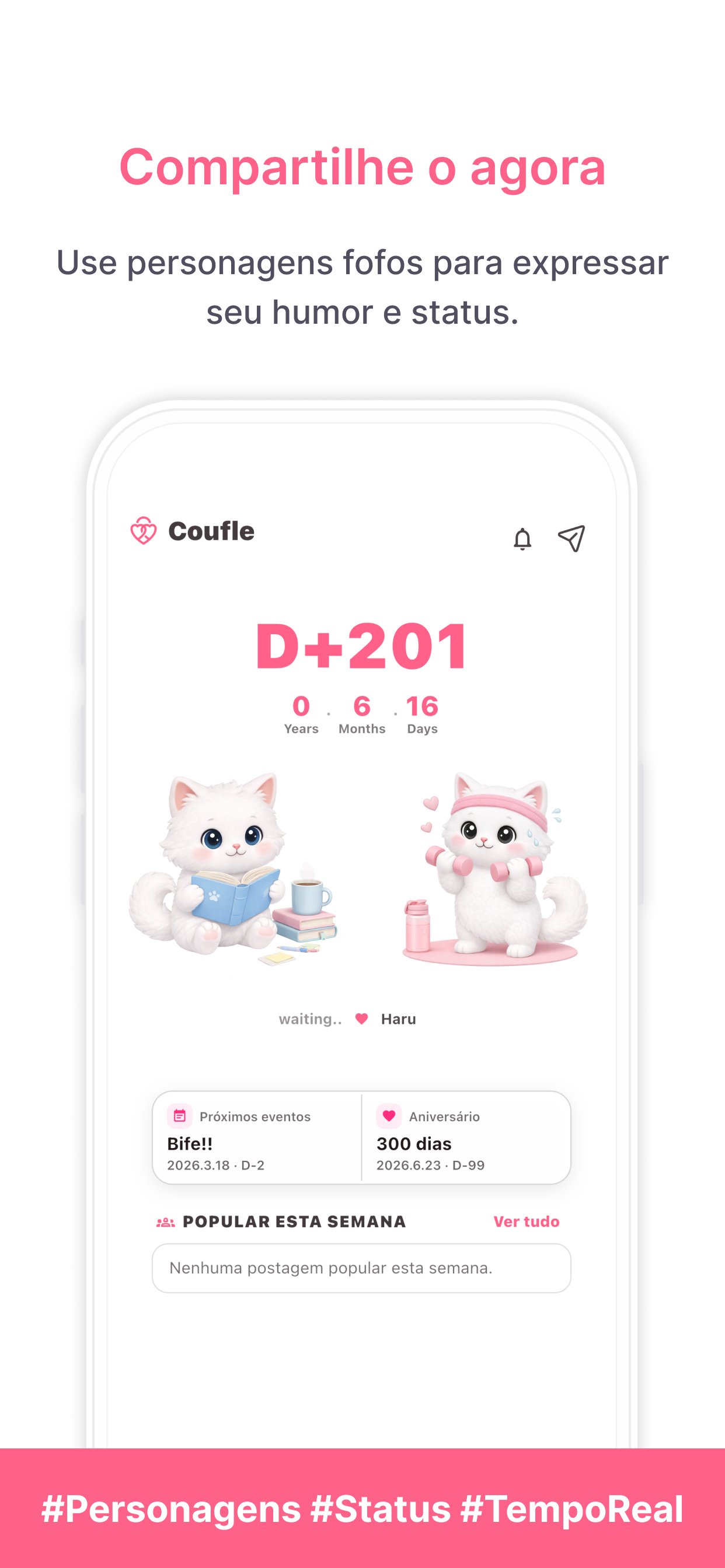 Compartilhe seu humor e status atual com seu parceiro usando personagens fofos.