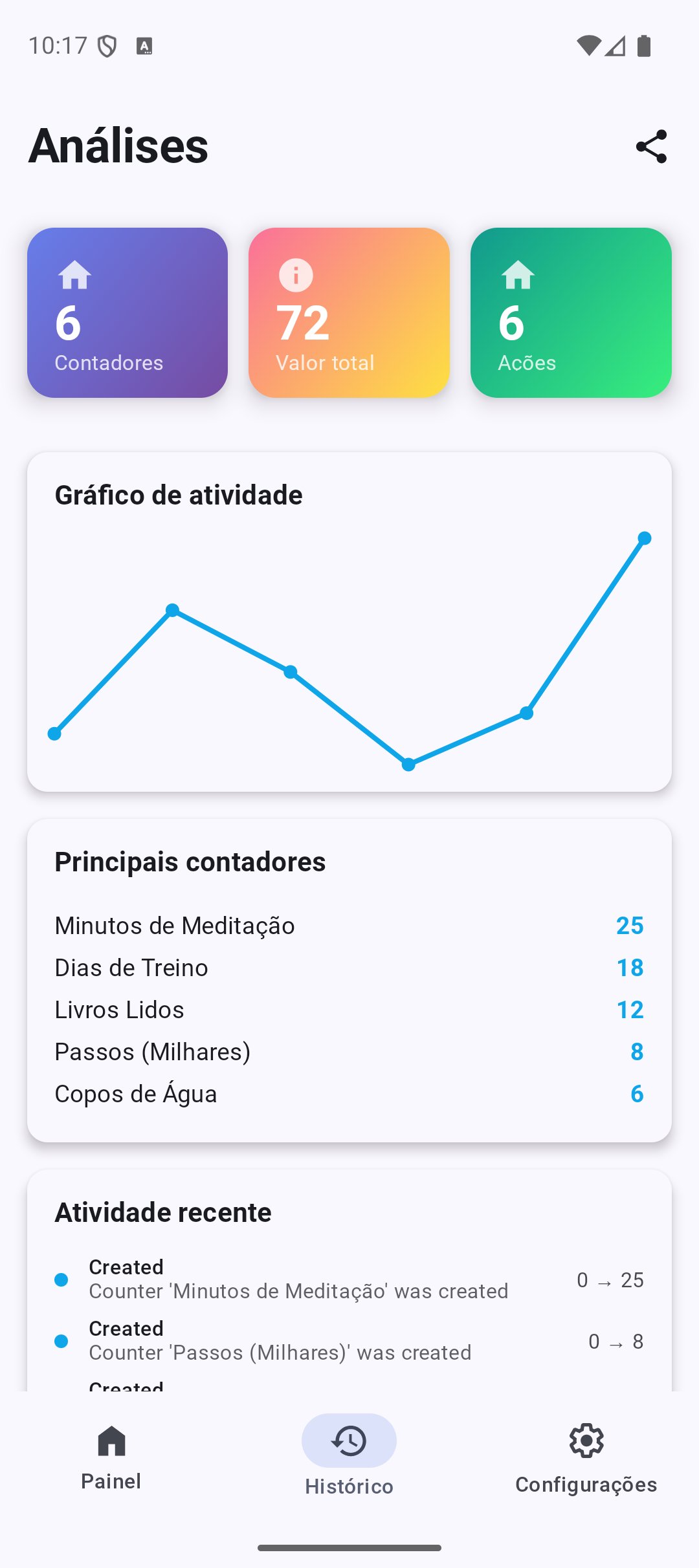 • Hábitos diários - Conte copos de água, passos dados, livros lidos