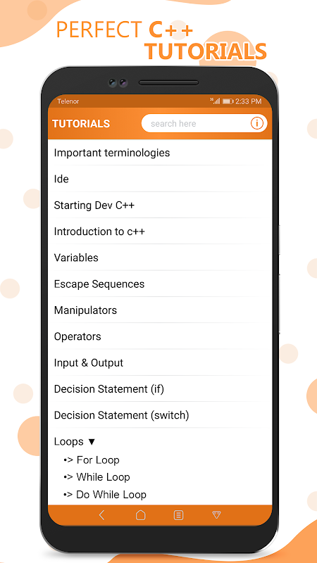 C++ Programming é um aplicativo educacional que oferece diferentes tipos de tutorial
