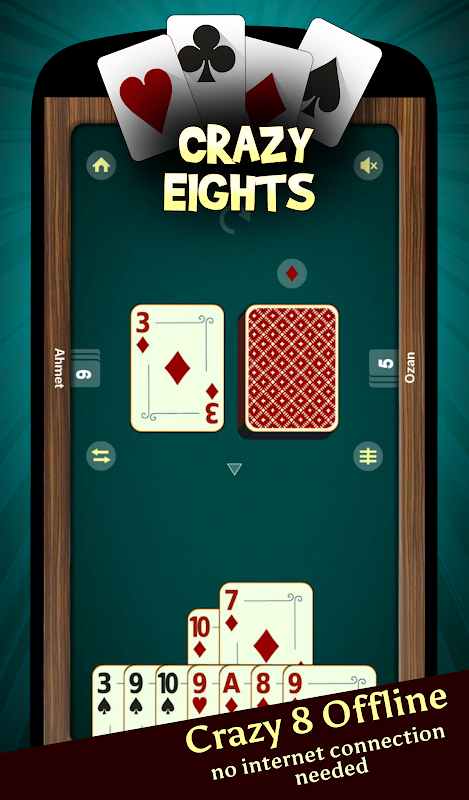 Download and PLAY NOW the Crazy Eights card game by SNG Games, especially designed for Android on Google Play Market. Crazy Eights is the popular card game that practically everyone has played. Switch, Mau Mau, UNO, Last One, Rummy, Rockaway are all other names of Crazy Eights! If you like any of these games you definitely should try this game!