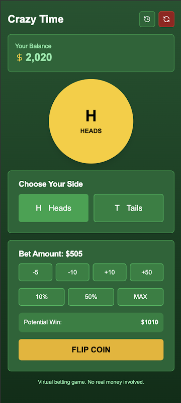 If you love to play crazy time game then this app is for you in this app you can play crazy time game with virtual money no real money involved in this game play and enjoy the game for fun crazy time.