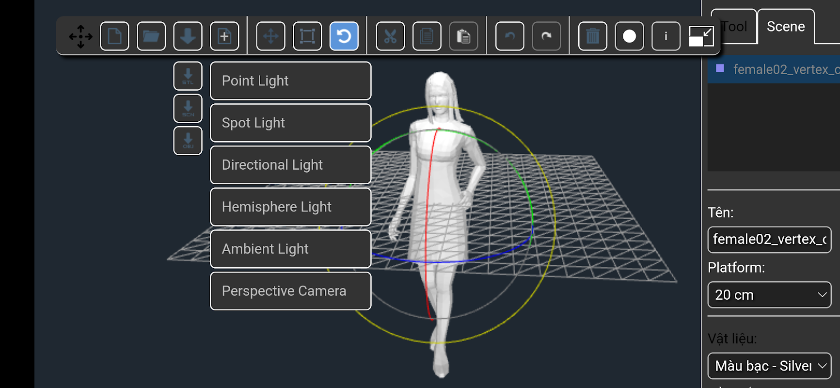Adicione formas geométricas (do painel direito) à plataforma para criar seu próprio objeto. Além disso, você pode importar modelos STL, OBJ e 3DS para a plataforma. Posteriormente, exporte o objeto como arquivo STL, OBJ (para impressão 3D) ou como um arquivo SCENE (para continuar trabalhando nele mais tarde).