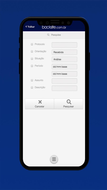 Aplicativo CRM BACKSITE