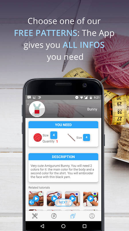 *** Precisa de inspiração? Amigurumi, luvas, travesseiro ... Todos os padrões estão disponíveis gratuitamente no aplicativo.