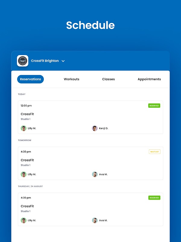 Reservas de aulas e gerenciamento de contas para membros do CrossFit Brighton