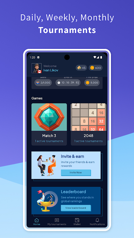 ✅ Torneios Diários, Semanais e Mensais: Mostre suas habilidades e ganhe recompensas todos os dias, semanas e meses.