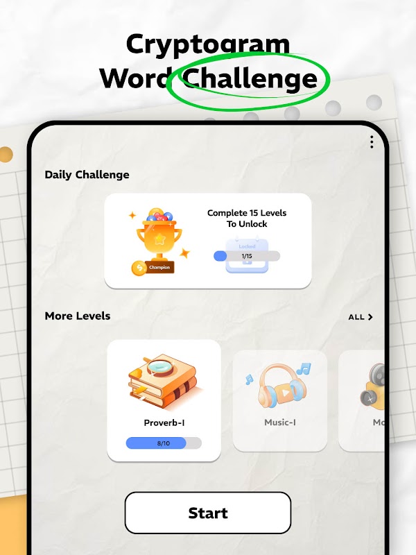 Neste jogo de palavras, você receberá 26 números e 26 letras atribuídos aleatoriamente. Cada nível apresenta uma frase ou trecho curto com letras faltando. Sua tarefa é usar os números fornecidos ou as pistas contextuais para preencher as letras que faltam e decodificar o texto oculto. O jogo de quebra-cabeça oferece uma mistura de desafios de criptogramas e quebra-cabeças, tornando-se um exercício perfeito para o seu cérebro e um deleite para os entusiastas de quebra-cabeças.