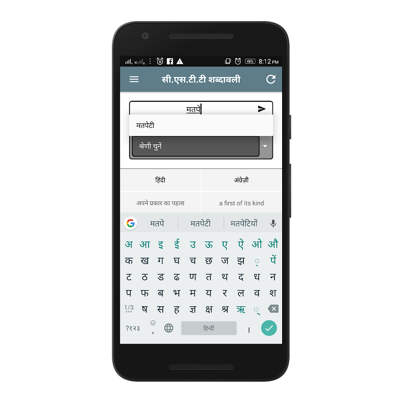 The Government of India established the Standing Commission for Scientific and Technical Terminology [CSTT] on 01 October 1961 under clause 4 of Article 344 of the Constitution of India on the recommendation of a committee and by the order of the President, Republic of India issued on 27 April 1960 with the objective to evolve terminology for all Indian Languages. The main function of this Terminology Commission is to evolve the Standard Terminology, use, propagation and distribution. Evolution of Scientific and Technical Terminology including reference material in Hindi and other Indian Languages in collaboration of State Governments, Universities and / or Regional Text Book Boards / Granth Academies. Presently CSTT is functioning under Department of Higher Education, Ministry of Human Resource Development, Government of India with its headquarter at New Delhi and twenty two State Granth Academies / State Text Book Boards / Universities Cells, etc. are also associated with this Terminology Commission with their main motive to produces University Level Text Books / reference materials in Hindi and other Indian Languages with the use of standard terminology as evolved by the CSTT. Till date CSTT has standardized the terminology of about eight lakhs technical words in different subjects and in different languages. Apart from this CSTT has published large number of Definitional Dictionaries, Glossaries, Text Books, Reference Materials, Monograph, Quarterly Journal, named, Vigyan Garima Sindhu and Gyan Garima Sindhu and many more similar nature of work. CSTT has also taken care of Administrative and various departmental glossaries that are widely used by various government departments, Institutions, Research Laboratories, Autonomous Organization, PSUs, etc. CSTT regularly organizes workshops, seminars, symposium, conferences, orientation and training program to increase the use and popularise the standard terminology of Hindi and other Indian languages.