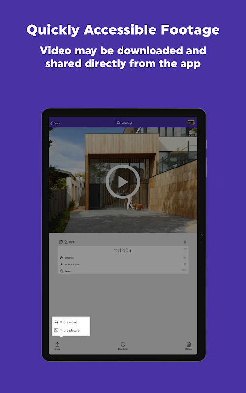 - Armazene todos os vídeos gravados em uma nuvem CUBE off-site segura; baixe e compartilhe vídeos diretamente do aplicativo.