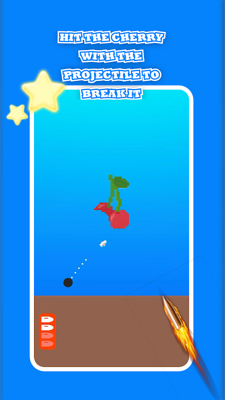 Tiro preciso: Preveja a trajetória com base na linha pontilhada e acerte os blocos de pixels com balas limitadas