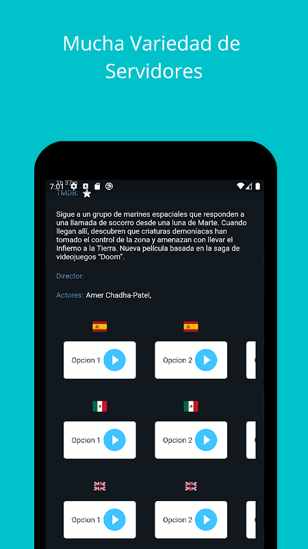 Possui uma grande variedade de servidores de streaming de vídeo para que você possa escolher o que melhor lhe convier. Este aplicativo contém todo o catálogo de páginas como Cuevana, Peplisplus, Pepecine e Repelis. Além disso, agora você pode salvar todo o seu conteúdo favorito em sua lista de favoritos, para ter acesso rápido e fácil a ele.