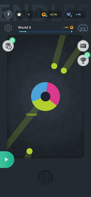 Embarque em uma serena aventura arcade em KULO: Solarpunk Space Journey! Mergulhe em um mundo cativante de cores vibrantes e jogabilidade simples, mas envolvente. Gire a roda multicolorida com apenas um toque, combine os pontos recebidos para reunir poder e explorar diversos mundos.