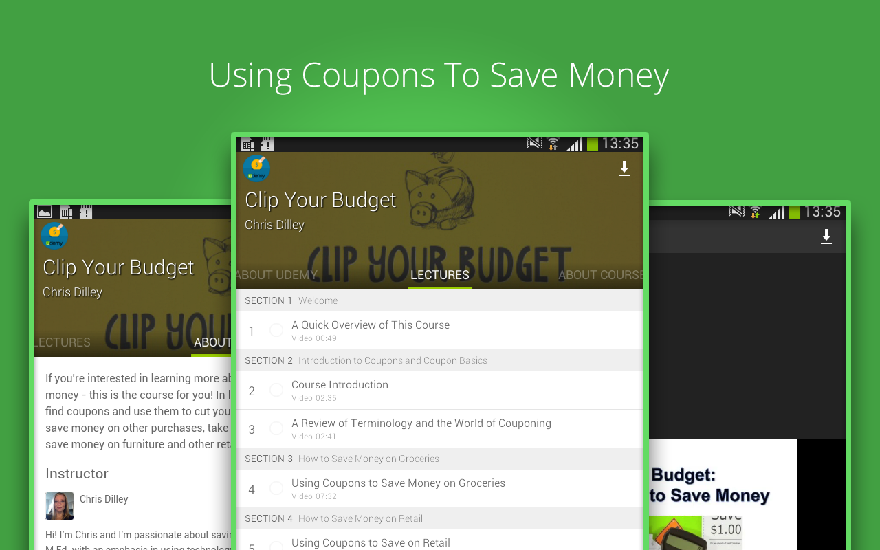 - Watch courses in offline: Save courses for offline viewing so you can watch them while you're on a plane or subway!
