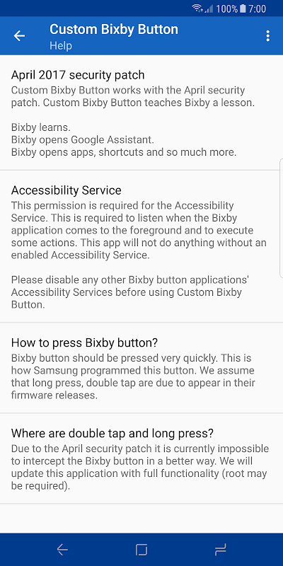 Este aplicativo requer um Samsung Galaxy S8 / S8 + e não funcionará em qualquer outro dispositivo. Personalizado Bixby Botão trabalha com o patch de segurança abril . Custom Bixby Botão ensina Bixby uma lição.