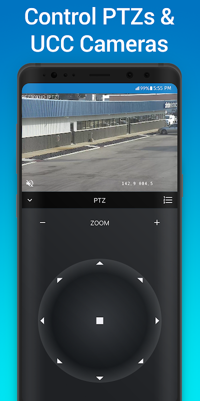Tem uma câmera PTZ? Mova a câmera sem esforço com o joystick virtual e navegue rapidamente pelas predefinições com um simples toque na lista de pré-visualização de miniaturas predefinidas.