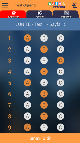 É um aplicativo onde os alunos podem marcar as respostas do teste, ver os resultados, acessar as chaves de resposta e acessar os vídeos da solução das perguntas sobre as publicações que usam. Os alunos podem fazer isso lendo o código QR e o formulário óptico por meio do aplicativo. As pontuações são mostradas de acordo com os testes de habilidade.