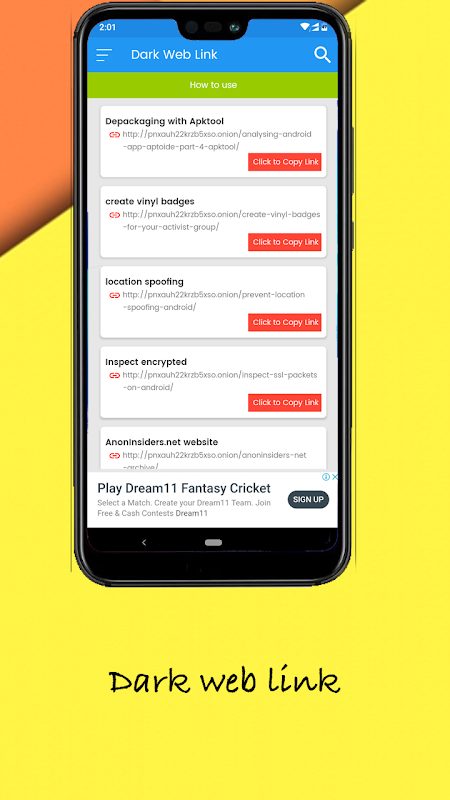 Dark Web application also provide dark web and deep web related real online links to get more about with the dark web, deep web and darknet.