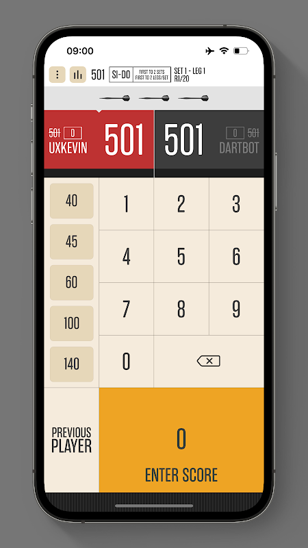 • DartBot com múltiplos níveis de dificuldade para X01 e Cricket Padrão.