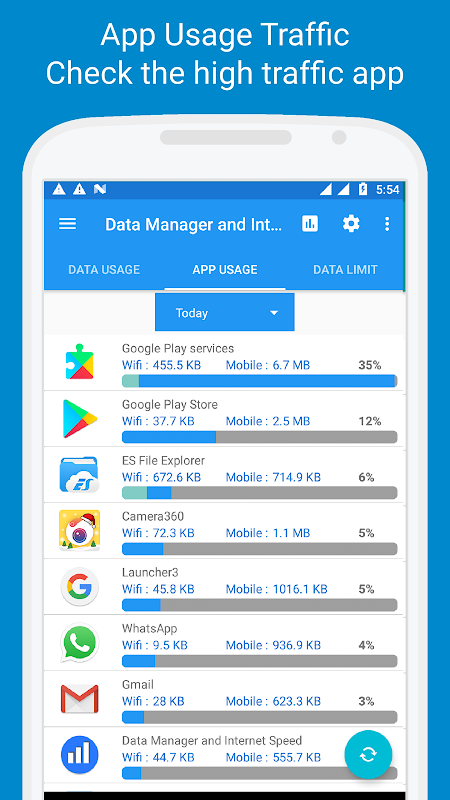 Manage Data Plan, Monitor Live Speed & Data Usage(Mobile Data) by each App