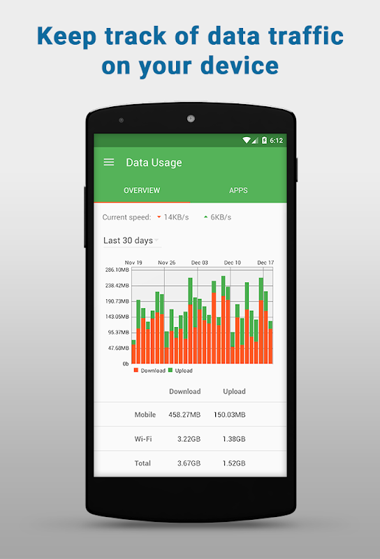 Whether you're connected to a WiFi or a Mobile network, you can now easily monitor how much traffic your apps use.