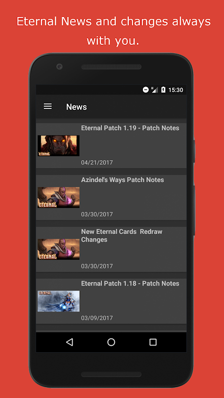 Database for Eternal allows the user to have the world of Eternal Card Game always in your hand.
